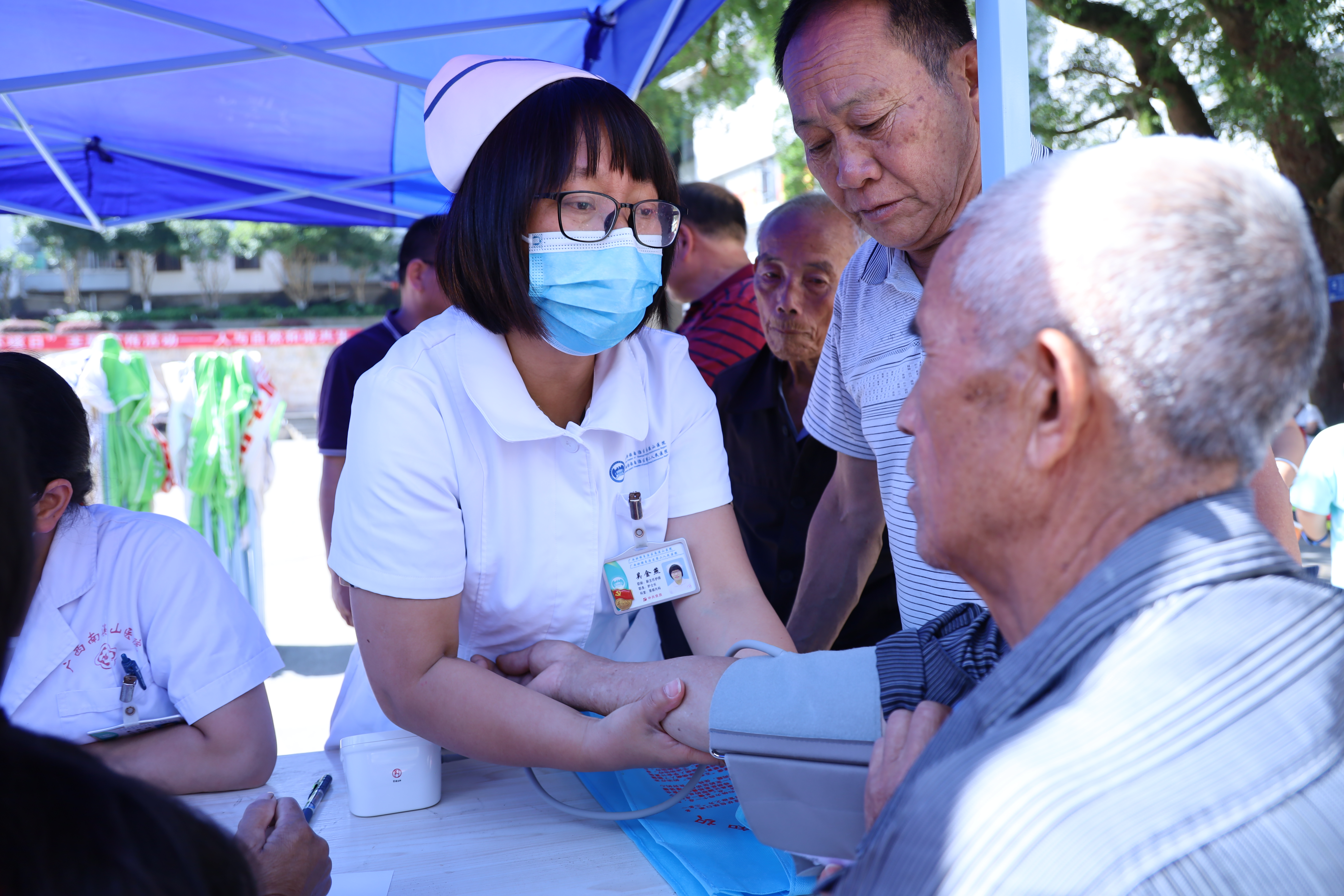 区南溪山医院肾病内科护士长吴金燕正在为群众血量血压