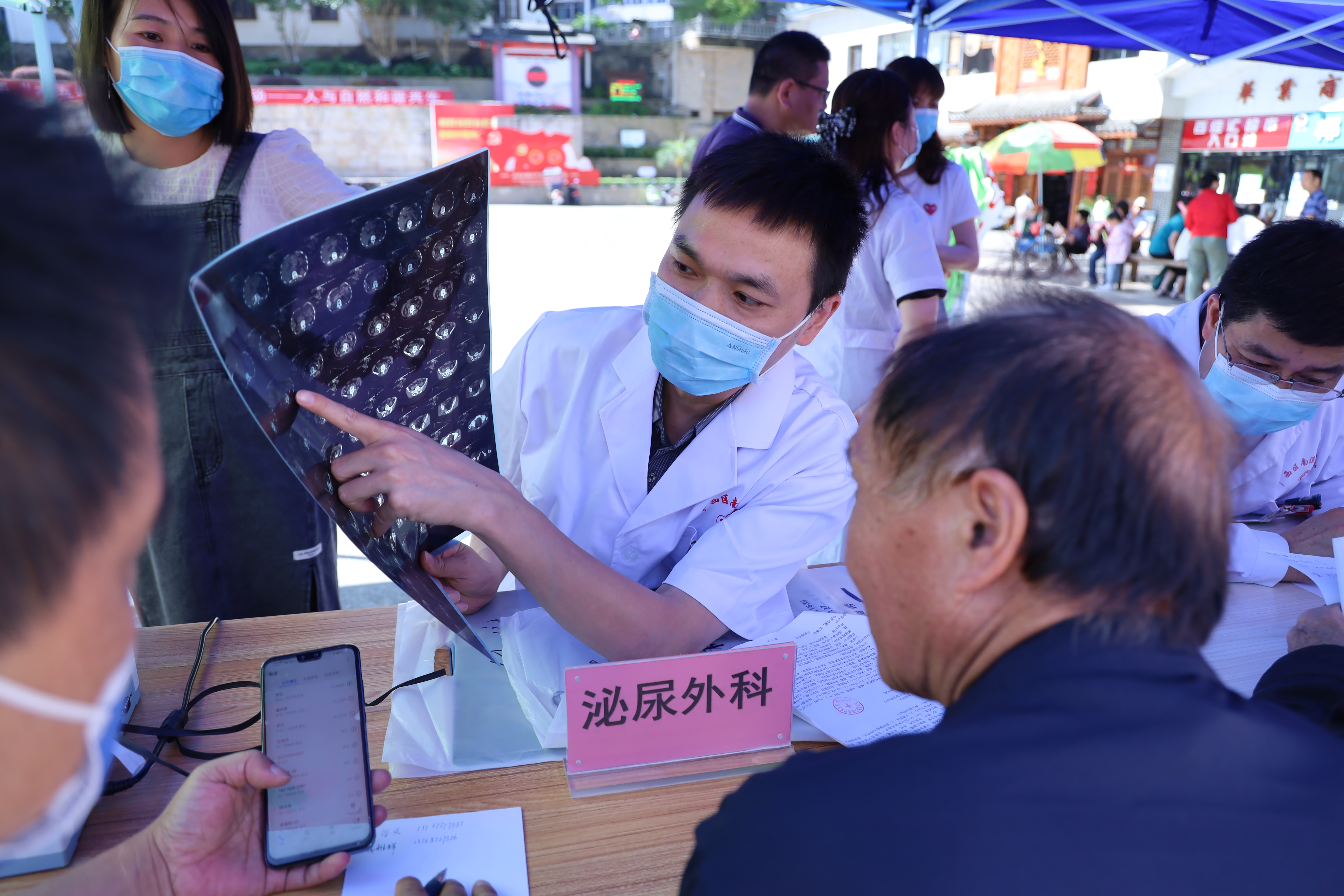 区南溪山医院泌尿外科主任廖松柏为群众阅片