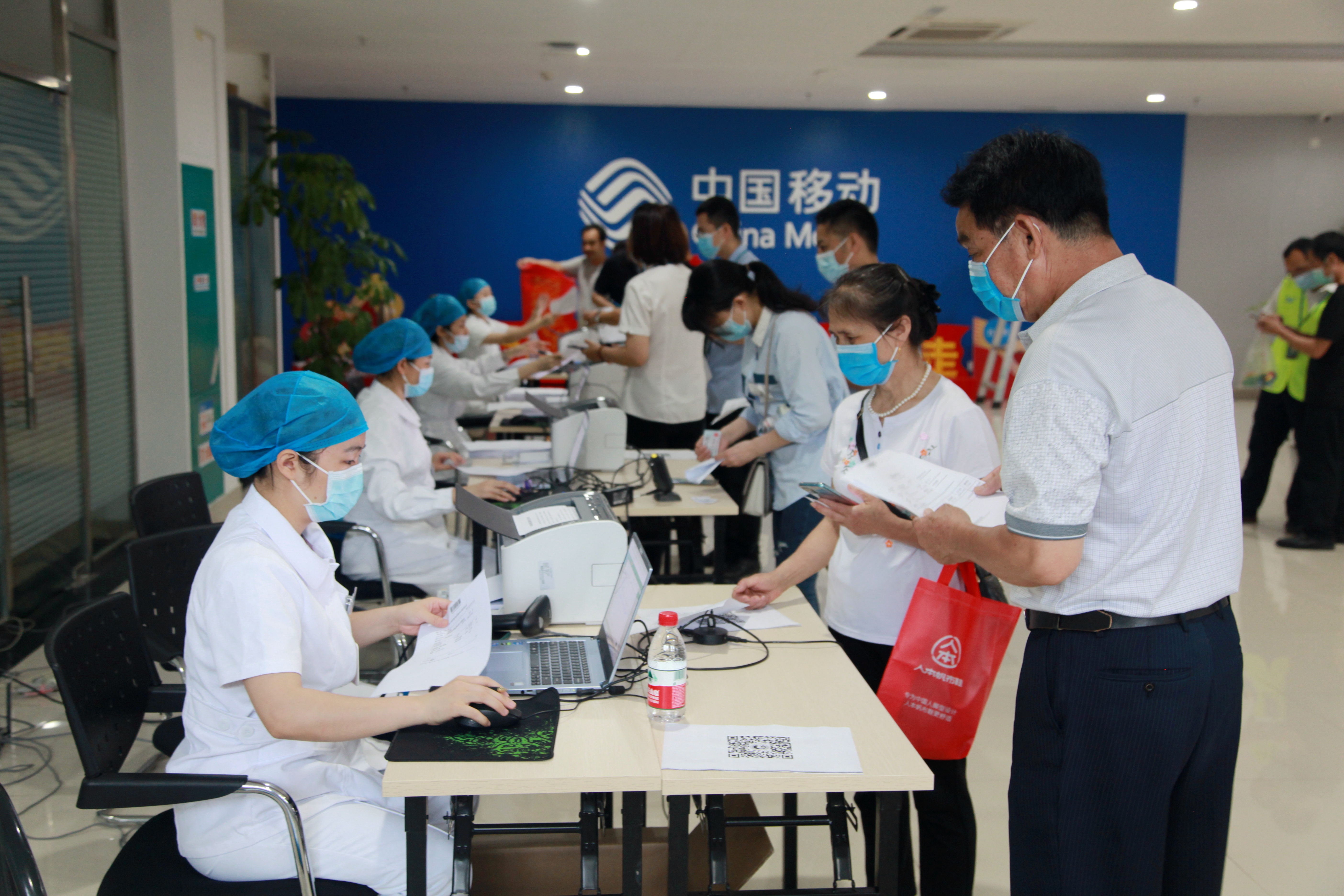 中国移动公司的职工向移动接种队送锦旗时感动地说道:「本来就因为工作忙,没办法到医院接种新冠疫苗,南溪山医院的移动接种车,实实在在的替我们解决了一件难事,他们办利民之事,怀爱民之心,我们十分感谢他们!」