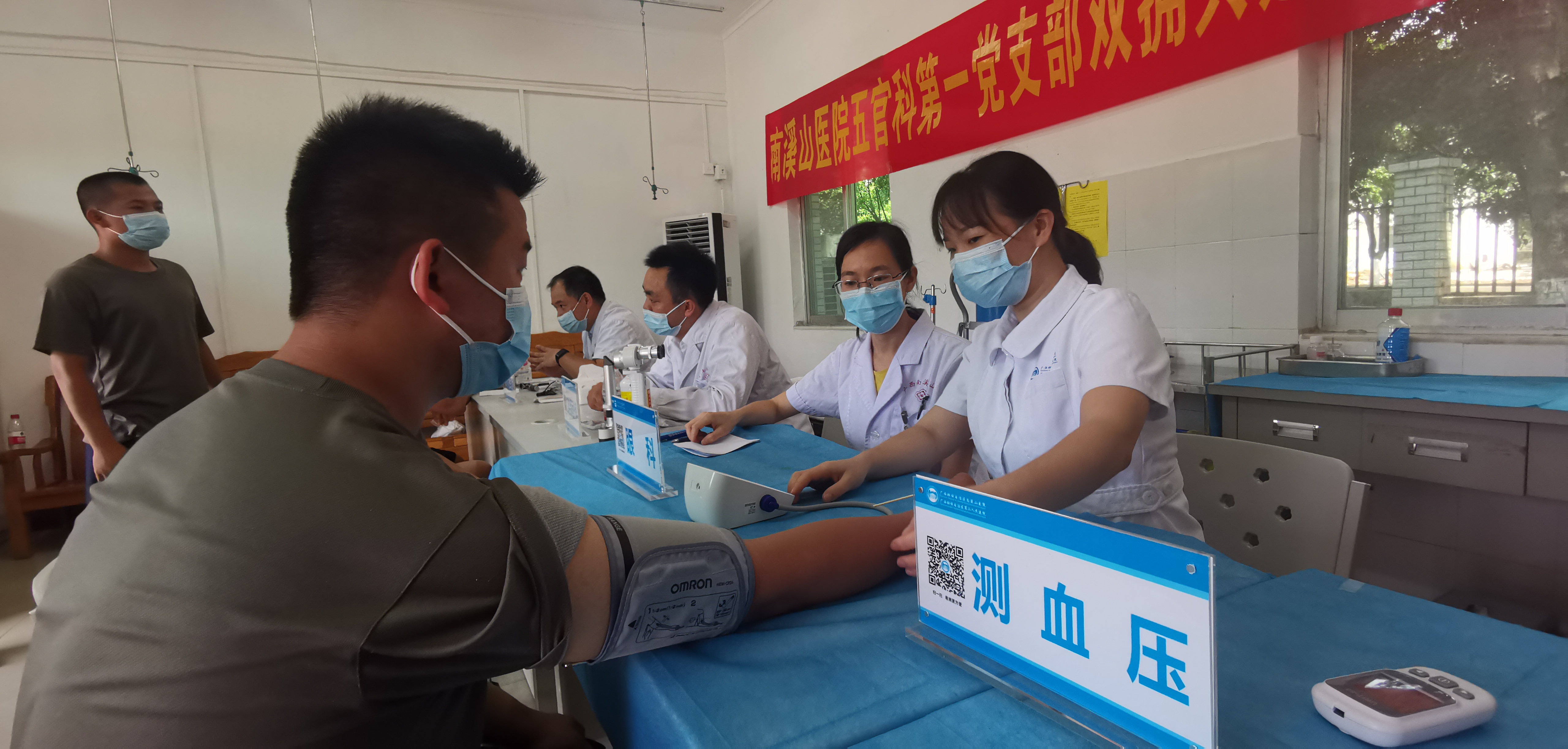 当天上午,来自广西壮族自治区南溪山医院五官科的耳鼻喉头颈外科、眼科、口腔科等科室的党员专家、护士、志愿者携带相关医疗设备在部队的卫生所内展开义诊服务。