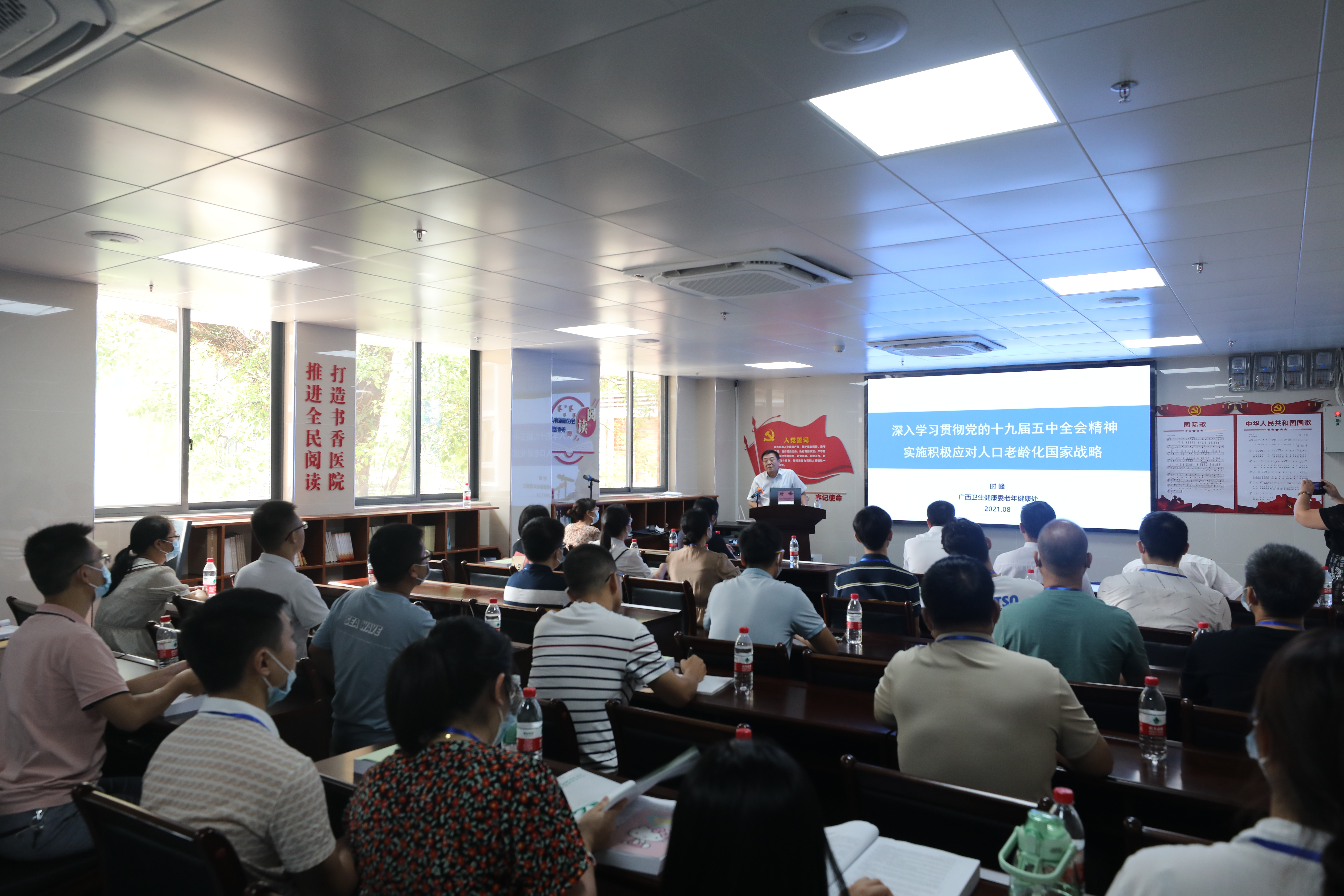 开班仪式结束后,时处长为各位学员讲授第一课,带领全体学员学习领悟党中央关于应对人口老龄化问题,提高老年人口健康水平的战略思想和具体措施。