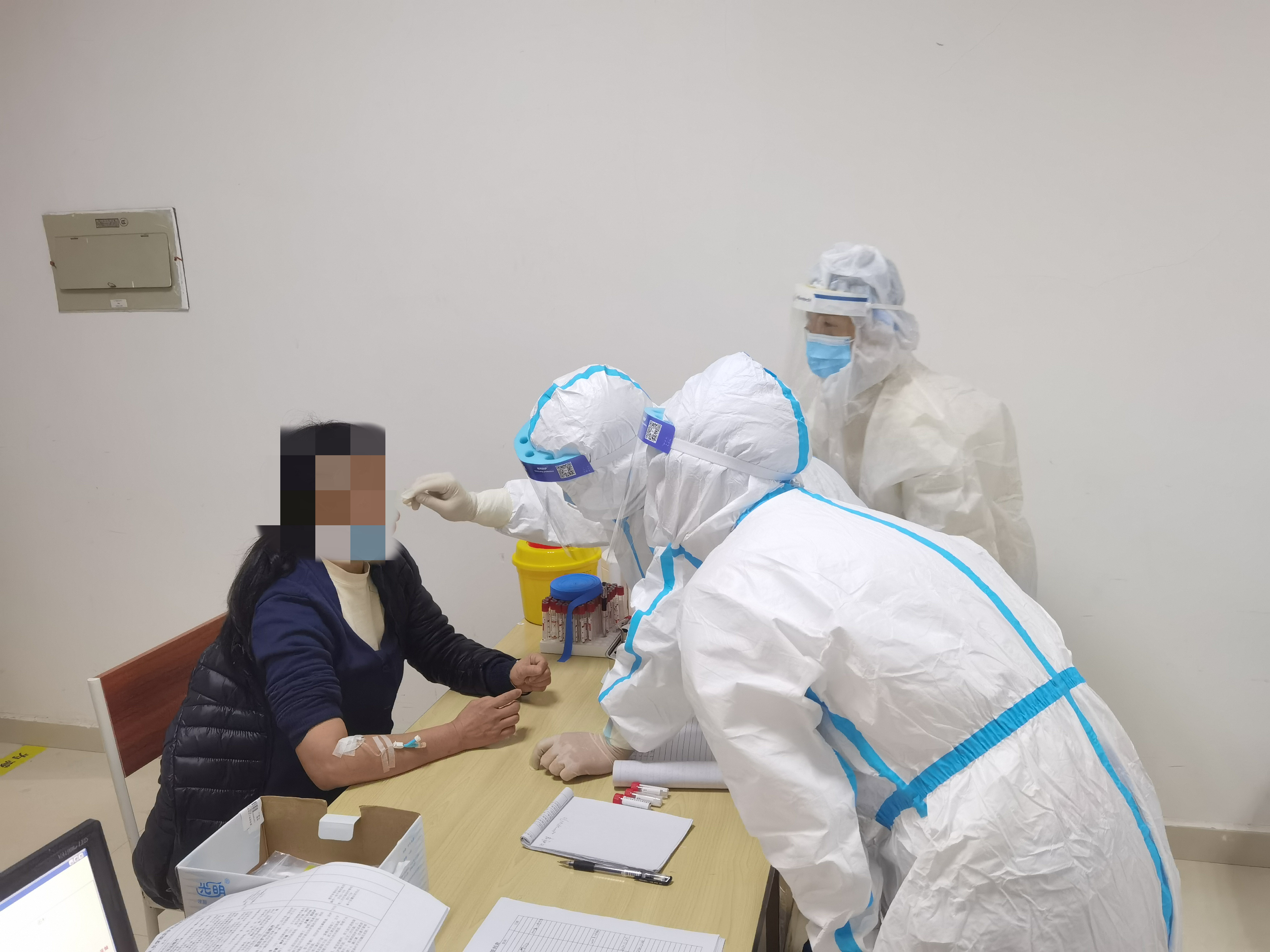 随着疫情防控工作形式出现常态化、长期化发展,为满足当前疫情防控的需要,医学检验科不仅要处理好日常标本,还承担着医院门诊采样工作。厚重闷热的防护服,没有阻挡他们工作的脚步,他们克服种种困难,完成了对新入院患者、陪护人员、发热患者等人群的核酸、抗体检测工作。