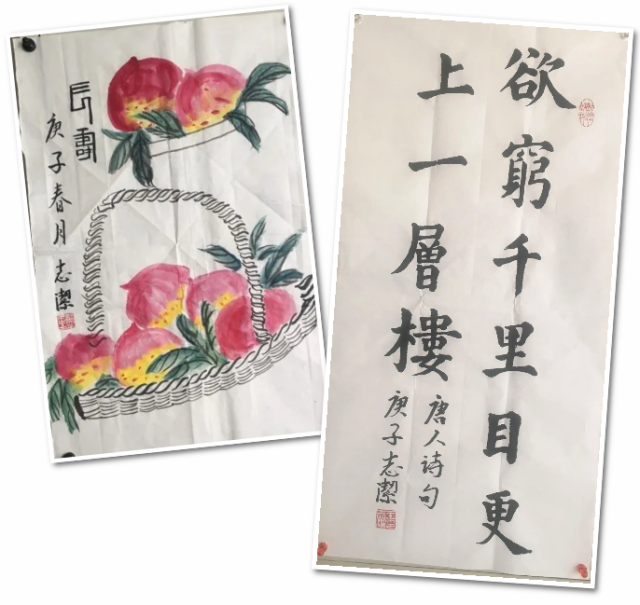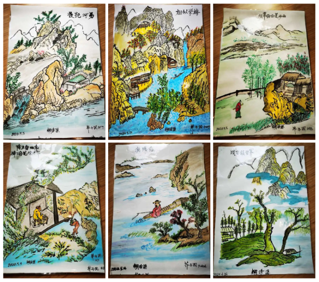 疫情期间机构实行了封闭管理,书画班停课了,但我们坚持习画(每天 2-3 小时),从报纸获悉海棠花盛开,就画了「莫愁湖海棠花景」;樱花盛开时,就画了「鸡鸣寺樱花大道花景」;机构组织「抗疫宣传画活动」时,画了几幅相关的画作,示意向战疫英雄的致敬;此外练习山水画、花鸟画并未停止,巩固了绘画技巧,加深了对绘画的浓厚兴趣,这里几幅画件,供作交流请指正,益祝阖家安康!