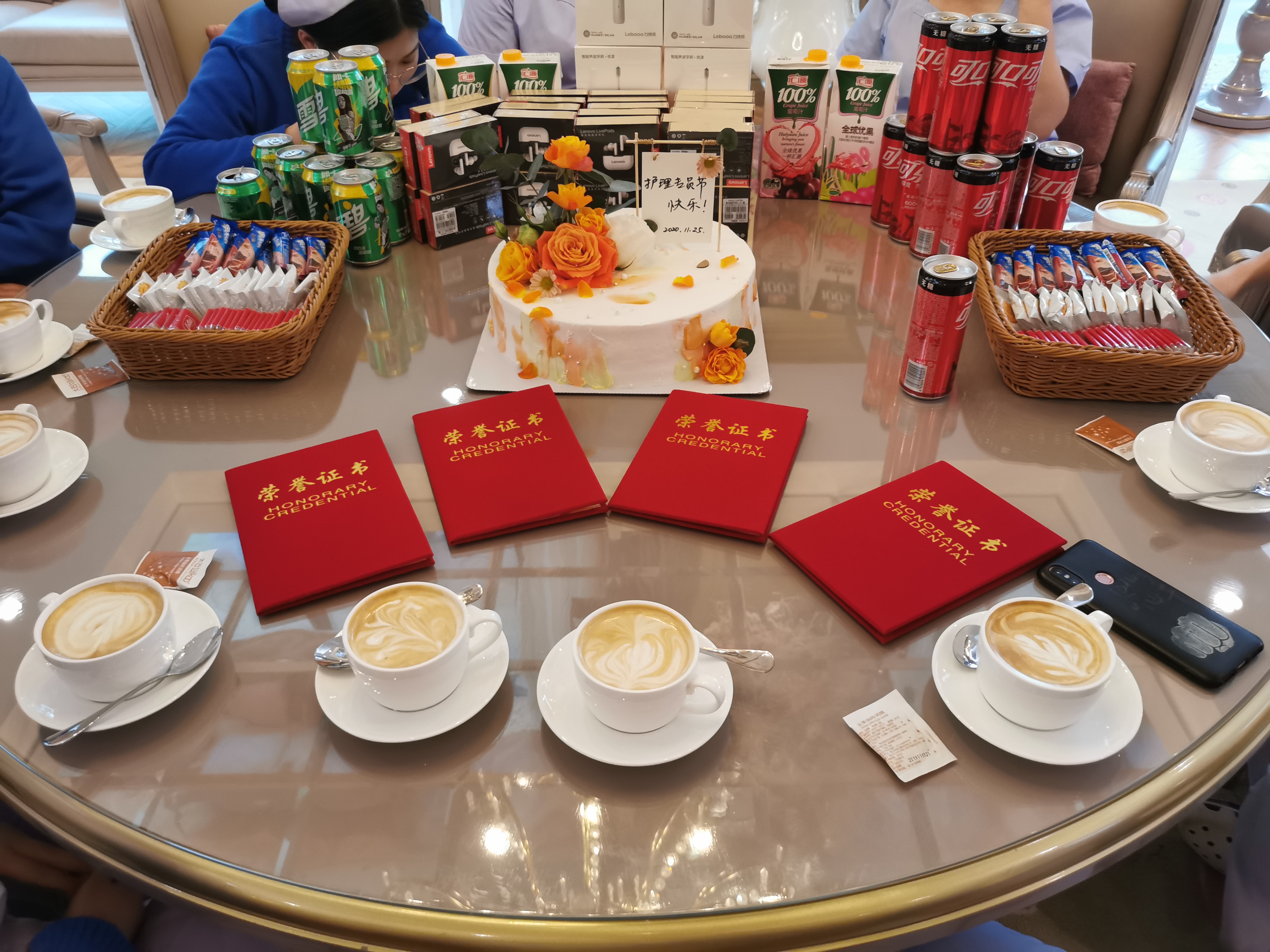 在活动当天下午准备好节日蛋糕、礼品,在法式沙龙为护理专员庆祝节日,并公布护理专员评选结果,由院领导颁发荣誉证书和奖品。