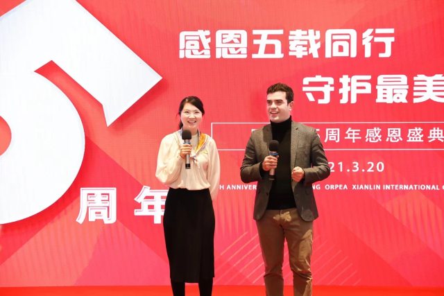 3 月 20 日,欧葆庭仙林国际颐养中心五周年纪念日庆典在欢声笑语中拉开帷幕,入住长辈、家属及工作人员上百人齐聚一堂。栖霞区民政局于怀忠副局长出席活动并发言,颜宏科长、街道王祝霞科长陪同出席。欧葆庭集团中国区总裁高天礼发来远程贺词,中国区运营总监顾特睿现场发表演讲,感谢长辈和家属、员工们五年来与我们风雨同舟,祝福明天会更好。