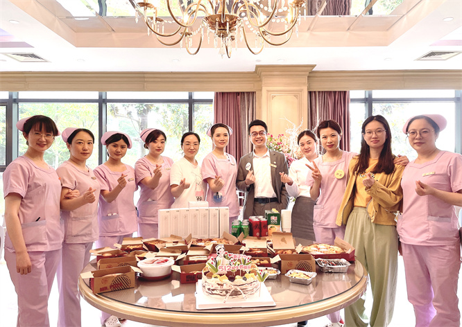 特别值得一提的是,因疫情封闭期间,入住长辈家属、院外社区老年朋友不能到机构来参加活动,南京欧葆庭仙林国际颐养中心还特地开展网络直播形式,令院内外的亲友长辈们可以一同参与本次活动。此外,机构院办还为护理团队成员们准备了丰盛的「节日大餐」——诱人的蛋糕、丰富的礼品,大家在欢声笑语中同庆这属于他们的节日!