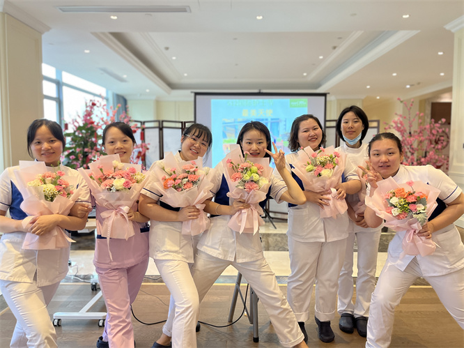 长沙北辰欧葆庭国际颐养中心的护理团队准备了精彩的表演,她们活泼可爱、亲切体贴的形象深深感动了参加活动的长辈们,收获了无数鲜花与祝福。