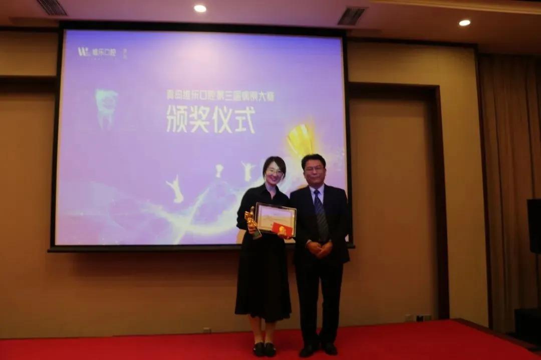 值得一提的是维乐口腔资深全科修复专家田姗姗医生在 2020 年 10 月 21 日举行的「第四届美维口腔医疗全国病例大赛」中勇夺第二名,成为大赛种植全科组唯一获奖的女性选手,美维口腔医疗集团医务部总监曹丽萍再次为田姗姗医生颁发荣誉表彰。