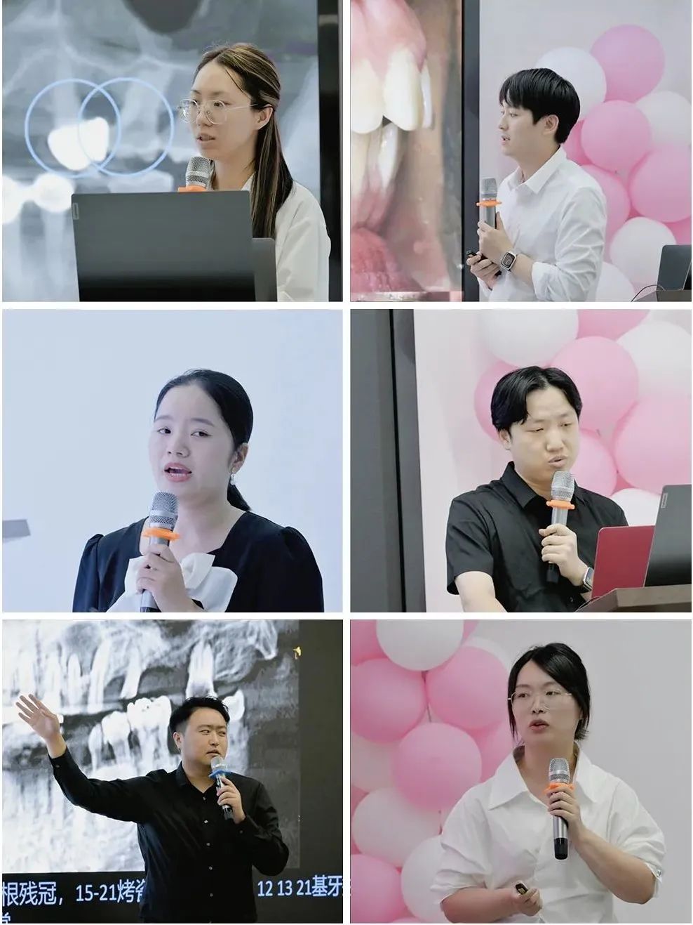 此次病例大赛为口腔多学科联合比赛,来自福州维乐口腔 12 家连锁的 18 名医生们,就种植、正畸、儿牙、全科等各种专业轮番登场比拼,比赛现场气氛热烈,青年医生们的病例分享精彩纷呈,亮点频出,进步明显,现场不时爆发出热烈的掌声。参赛医生们就自己的优秀案例,从既往史、治疗方案、诊疗流程、预后效果等多方面进行分享汇报,用扎实的理论功底与临床实践能力,将专业知识与诊疗理念用通俗易懂的语言,生动流畅的表达,全面展现维乐口腔医生们对口腔事业的专注与热忱,体现了良好的专业功底与精神风貌。