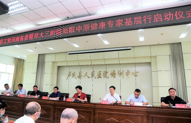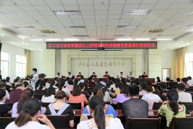 上午 8:30,农工党河南省委暨郑大三附院知联中原健康专家基层行启动仪式在卢氏县人民医院举行。全国政协委员、农工党河南省委专职副主委花亚伟,卢氏县县委副书记、县长张晓燕,农工党河南省委副主委、郑州市政协副主席李新有,农工党河南省委副主委、郑大三附院院长张小安,郑大三附院党委副书记、工会主席周荣群、副院长任琛琛,卢氏县委常委、副县长李兴东,副县长孙江涛,县政协副主席、县人民医院院长陈泽民,县卫生健康委党组书记、主任符红林,以及卢氏县县直医疗机构、民营医院、部分乡镇卫生院的相关专业医务人员等 150 人参加了仪式。仪式由孙江涛主持。