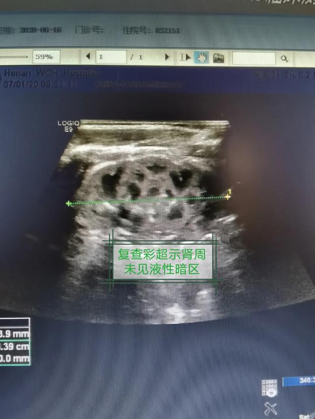 原来,2 个月前,家住郑州市的晓莉在孕期围保时发现胎儿左侧肾周尿性囊肿,随后多次复查彩超,显示左侧肾周尿性囊肿渐渐加重。