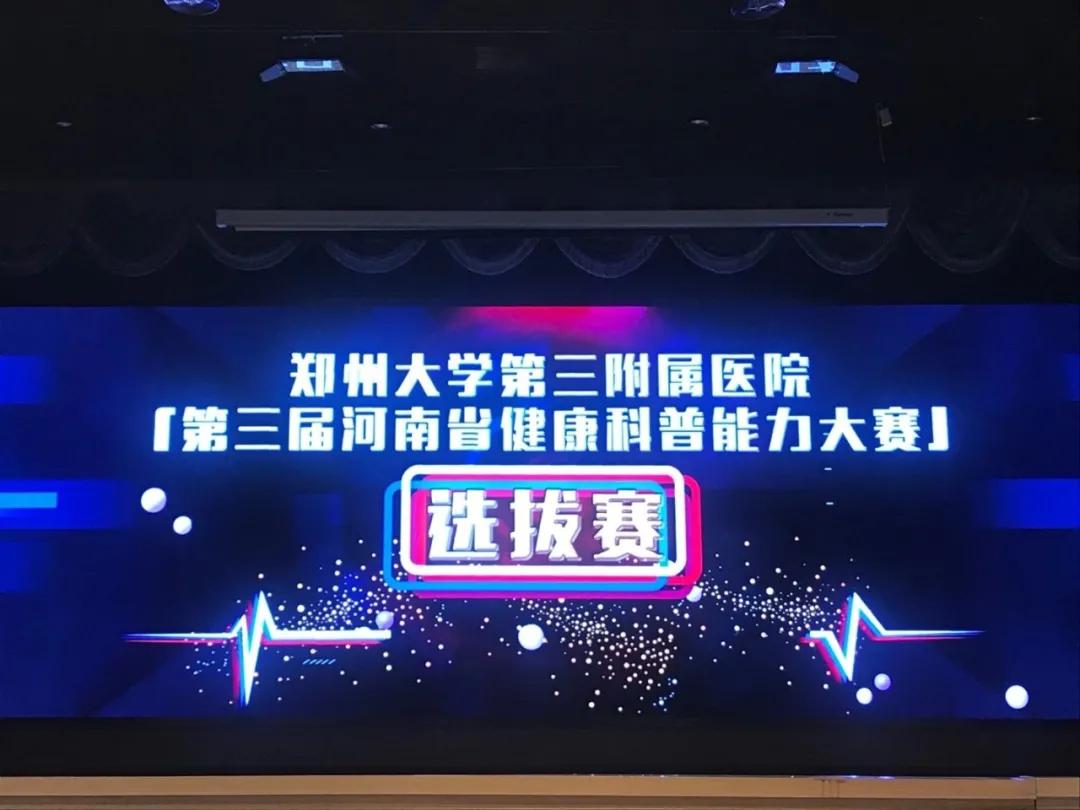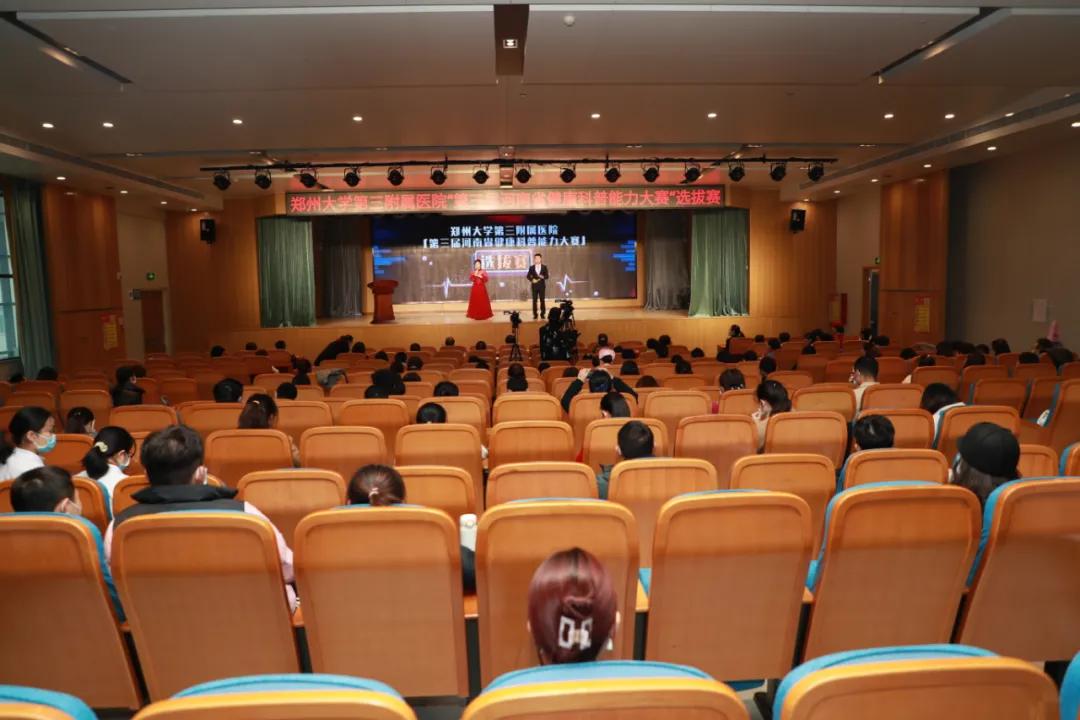 2020 年 11 月 20 日,郑州大学第三附属医院(省妇幼保健院、省妇女儿童医院)成功举办第三届河南省健康科普能力大赛院内选拔赛暨郑大三附院第二届健康科普能力比赛。大河健康报执行主编王丽娜、郑大三附院党委副书记周荣群、纪委书记党楠及相关行政职能科室负责人、参赛选手、全院各科室健康宣教员代表、通讯员代表等 100 余人参加了此次活动。