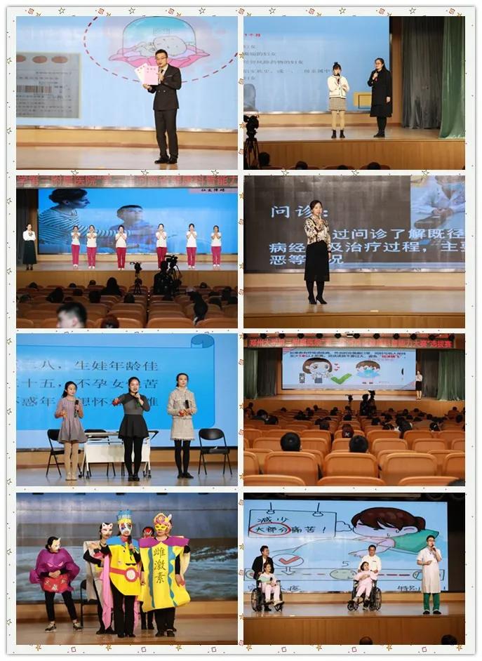 比赛中,来自全院各临床科室的 23 组参赛选手结合各自科室特色专业,自选主题和角度,重点围绕妇幼保健医学知识,用情景剧、演讲、相声、小品、歌伴舞等多种艺术形式展现妇幼保健人的医者风采,为观众们带来了一场科普宣教的饕餮盛宴。