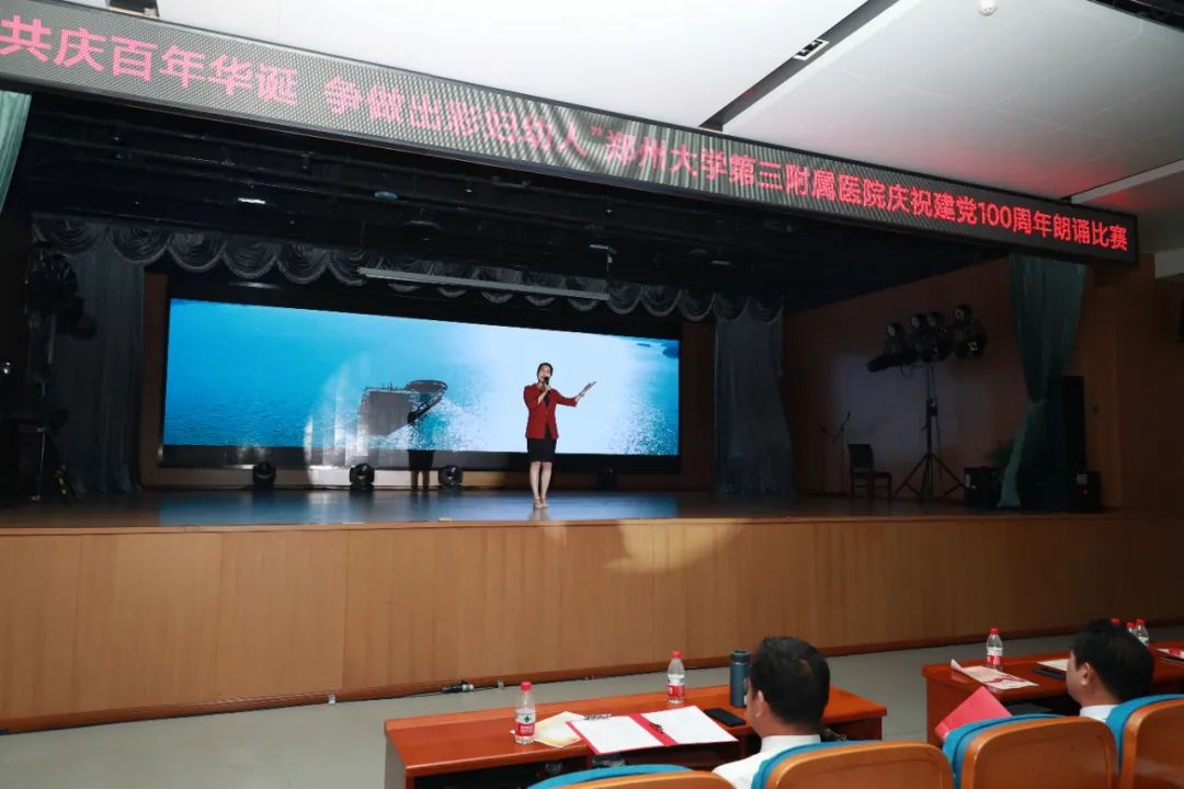 为了庆祝中国共产党成立 100 周年,深入推进党史学习教育,充分展现新时代医务工作者昂扬向上、蓬勃奋发的精神风貌, 6 月 25 日,郑州大学第三附属医院(省妇幼保健院、省妇女儿童医院)举办庆祝建党 100 周年朗诵比赛。