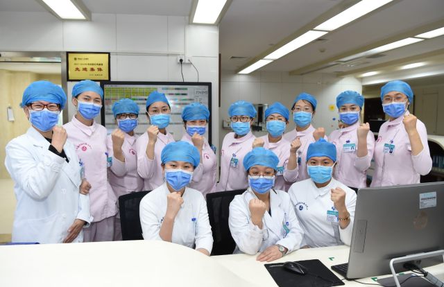 共克时艰——1 月 28 日大年初四傍晚,河南省人民医院国际医疗中心病房内,查房结束后,多名坚守在岗的医务人员一起为战胜疫情加油打气!