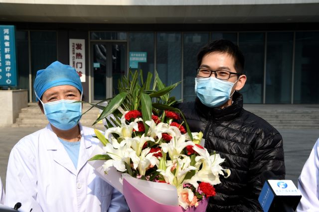 痊愈!——2 月 2 日河南省人民医院首例新冠肺炎患者痊愈出院,面对镜头露出笑容。