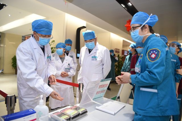 精准布控——1 月 24 日,河南省人民医院面对疫情迅速反应,院领导及相关职能科室在各个位置设置发热预检分诊台。