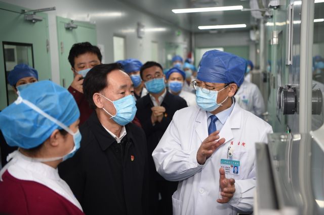 2 月 18 日,河南省人民政府副省长戴柏华视察河南省人民医院刚刚建成交工的专用隔离病房,听取医务人员的介绍。经河南省疫情防控指挥部同意,河南省人民医院 15 天建成投用 4 层框架 2300 余平的公共卫生医学中心新冠楼,拥有国内一流技术标准和智能高端设施配置的负压病房。