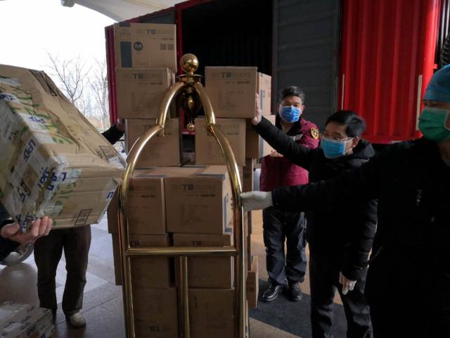 黄清没有一点领导架子,每次家里的物资运到随州,他立即带人投入到装卸工作中,指挥部工作人员远远地看见他们三五人正在劳动,走进只见黄清正弓起身子用力前行,一双大手使劲推着装的满当当的行李托运车,额头已经冒出来汗珠。目前 8 批物资(除防护物资以外,还有生活物资),都是经他们的双手搬进仓库,又经他们双手分发到 5 个定点医院。